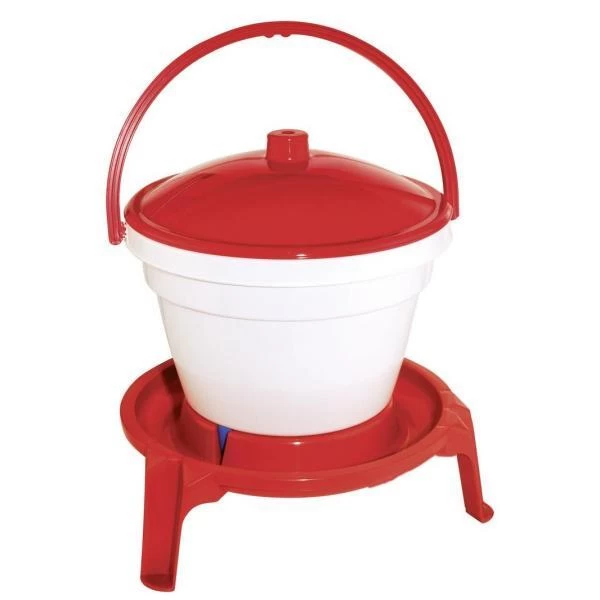 Dinkbak 12 liter voor allerlei pluimvee zoals kippen, ganzen, kalkoenen, duiven,…De drinkbak staat op een voet waardoor bevuiling en bevriezing minder kans krijgen. Gemaakt van hoogwaardig kunststof en geleverd met een praktische draagbeugel.