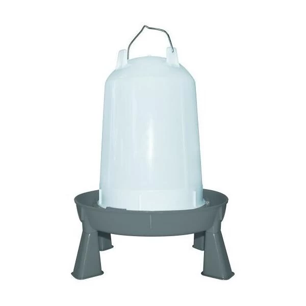 Kunststof drinkbak op poten met waterreservoir voor pluimvee. Dankzij de afneembare pootjes is deze silo zowel te gebruiken voor kuikens als voor volwassen kippen of ander pluimvee.