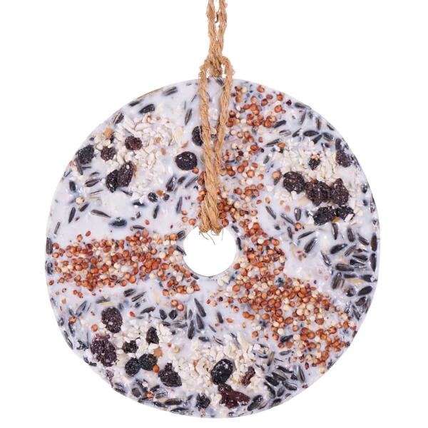 Verras de vogels in jouw tuin met deze lekkere vogelpizza van Emma’s Garden. Een heerlijke snack waarbij vet gecombineerd is met een variatie van zaden, noten, pitten en rozijnen. De pizza kan met het bijgeleverde touw makkelijk worden opgehangen aan een tak.
