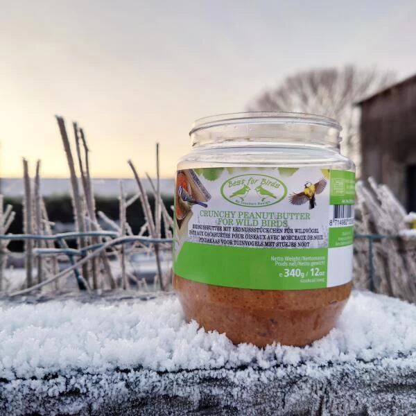 Pot ongezouten pindakaas met stukjes noot speciaal voor onze tuinvogels. Pindakaas gemaakt voor menselijke consumptie bevat teveel zout en kan schadelijk zijn voor de vogels in uw tuin. Koolmezen en pimpelmezen zijn verzot op pindakaas.