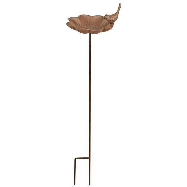 Een prachtige en unieke voederschaal die de vorm van een bloem heeft waarop een decoratief vogeltje zit. Help de vogeltjes in jouw tuin de winter door te komen door zaden en ander vogelvoeder op de schaal te leggen.