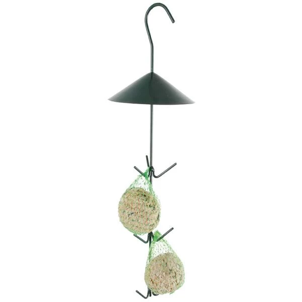 Aan deze donkergroene voederhaak kan je verschillende soorten vogelvoer hangen. Er zijn in totaal negen haken aanwezig. Je kan dus tot negen verschillende netjes met vetbollen, pindanoten of ander vogelvoer ophangen voor de verschillende soorten vogels in je tuin.