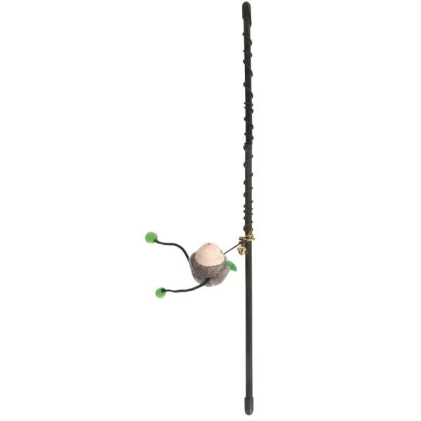 Deze flexibele kunststof hengel is voorzien van een touw met op het uiteinde een speelgoedmuis en een belletje. Door de muis gewoonweg rond te laten draaien en door de lucht te laten zweven wordt jouw kat gestimuleerd erachter aan te gaan.