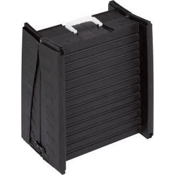 De brug vouwt samen tot een handig en compact koffermodel met draaghandvat.