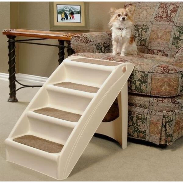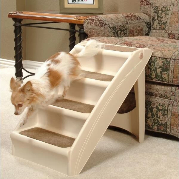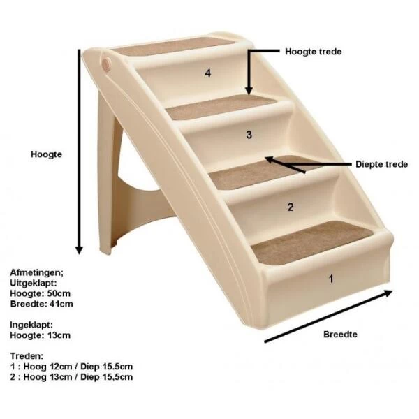 Help jouw hond met deze trap veilig een hoogteverschil te overbruggen. Deze hondentrap biedt huisdieren de mogelijkheid om veilig op hun favoriete plek te komen. De unieke constructie van de trap ondersteunt een gewicht tot wel 68 kg. De traptreden zijn aan de achterkant dicht en op elke trede ligt een antislip mat zodat jouw hond veilig de trap op en af kan. Bescherm jouw rug en eveneens de poten en rug van jouw hond met deze inklapbare hondentrap. Doordat de trap inklapbaar is, heb je weinig opbergruimte nodig.