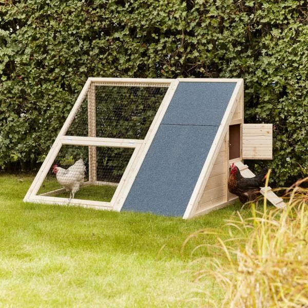 Uniek en modern kippenhok in duurzaam gedroogd hout. Het dak van dit hok is afgewerkt met dakleer, zowel het binnen als het buitenverblijf zijn voorzien van een toegangsdeur. Het buitenren is afgewerkt met kunststof gaas. Gedroogd hout is onbehandeld en kan in principe onmiddellijk buiten worden geplaatst. Echter is het wel aan te raden dit kippenhok op natuurlijke wijze te behandelen voor een langere levensduur.