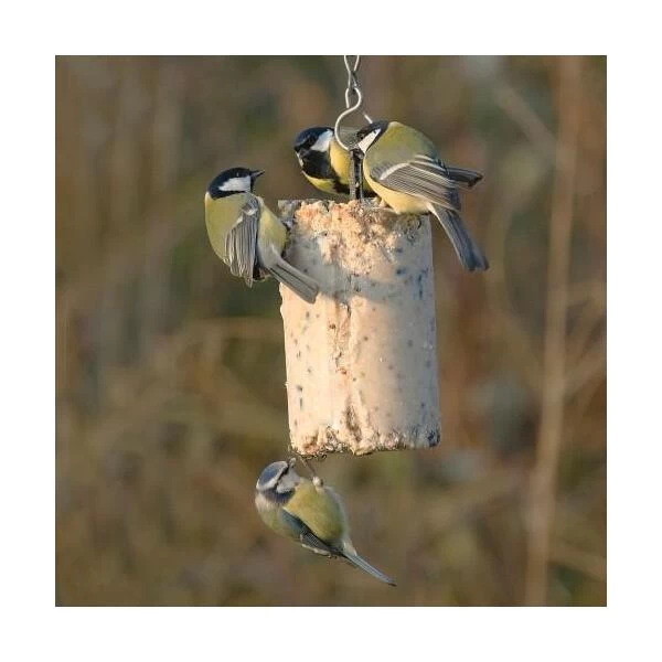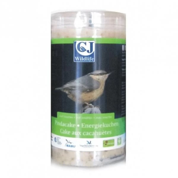 Met deze pindacake lok je ondermeer mezen, vinken, boomklevers, goudvinken, roodborstjes en mussen. Ingrediënten: pindameel, talg, gedroogde insecten, garnalen, kleine krabben, schelpengrit en houtskool.