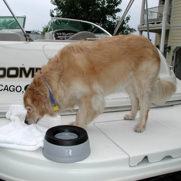 De ideale waterbak voor jouw hond in huis, de bench, caravan, auto of op de boot! Deze waterbak heeft een dubbele bodem (vlotter) met openingen die ervoor zorgen dat er maar een klein laagje water bovenop ligt. Zodra de hond tegen de vlotter aandrukt, komt er water door de openingen naar boven. Jouw hond drinkt hierdoor veel rustiger en minder gulzig.