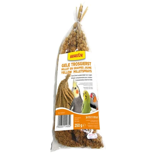 Smakelijke trosgierst als natuurlijke snack en tussendoortje voor de vogels. Het is een ware lekkernij voor zowel tuinvogels als volièrevogels. Het is een licht verteerbaar en gemakkelijk te pellen voeder dat kan worden gegeven als aanvullend voeder.