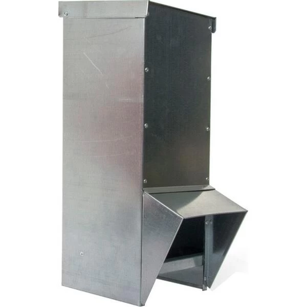 Met deze gegalvaniseerde voederbak voor kippen, fazanten, eenden en ander pluimvee hoef je niet elke dag te gaan voederen. Bovendien blijft het voeder mooi droog en wordt morsen tot een minimum beperkt zodat ook de overlast van vervelende knaagdieren achterwege blijft.