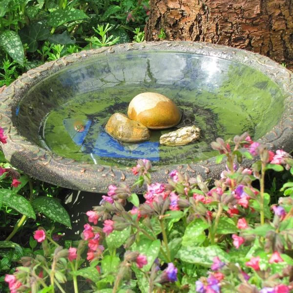 Dit vogelbad heeft de uitstraling van een door de jaren verweerd oud stenen bad. Het bad op voet is gemaakt uit een innovatief materiaal CLAYPLAS, een kwalitatieve combinatie van klei en gerecycleerd plastiek. Dit maakt het bad licht en bovenal duurzaam. Het vogelbad is afgewerkt in een antieke ‘stonefinish’ look.