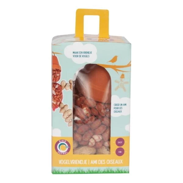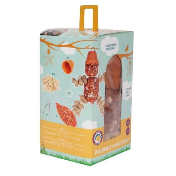 Met dit bouwpakket kan je samen met de kinderen jouw eigen vogelvoedervriend knutselen.
